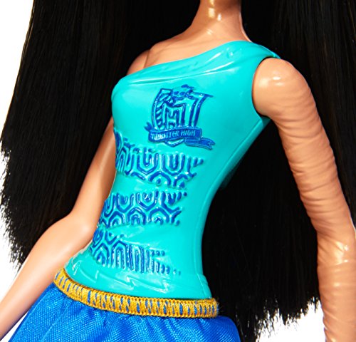 The Monster High cheerleaders know how to get fans screaming! Take Cleo de Nile doll to the field for some cheerleading fun. She comes alive in a cheerleader look with ragged hem skirt and matching kicks. The daughter of a mummy brings the crowd to life in a teal top with snake decal and blue skirt with golden sneakers. Play out sporty stories or capture sea-sational cheerleading moves. Collect all of the Monster High cheerleading squad to really get audiences yelling (each sold separately, subject to availability). Includes Cleo de Nile doll wearing fashion and shoes. Doll cannot stand alone. Colors and decorations may vary.Feature