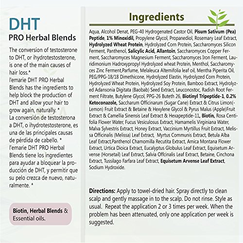 L'emarie Intensive Hair Growth Treatment for Women & Men - Hair growth, hair loss & scalp treatment infused w/ Biotin, 1% Minoxidil, Ketoconazole & DHT Blockers combines quality, effective ingredients to energize, heal and protect the scalp and stimulate hair growth, the prevention of hair loss, thinning & breakage. The L'emarie hair growth product targets the treatment of the scalp as the foundation for healthy hair growth and rids of testosterone on the scalp that works to destroy hair follicles leading to hair loss. The L'emarie hair growth treatment infuses the hair with proteins & vitamins to rid of growth blockers & enhance hair strength/growth. The L'emarie Hair Growth & Hair Loss Treatment contains a balance of key nutrients and antioxidant rich herbs like Rosemary Leaf, Allantoin, Tea Tree Oil & Peppermint that moisturize & stimulate hair growth. Other powerful ingredients include: Biotin: Used to protect & repair hair and prevent hair loss. Biotin deficient hair is prone to hair loss, thinning & breakage. Biotin is used to treat both women and men w/ alopecia, hair loss & dry, flaky scalp. Its adhesive properties keep the hair rooted in the scalp to avoid hair loss & create voluminous, thicker hair. Minoxidil: Used to stop hair loss & promote new hair growth for men w/ pattern baldness/alopecia and for women with thinning hair. Minoxidil extends the life cycle of the hair growth phase and the time period before the hair falls out. Key Ingredients: Ketoconazole, 1% MInoxidil, Biotin, Rosemary, Salicylic Acid, Tea Tree Oil, Peppermint, Brown Seaweed 4oz. Bottle. "These Statements have not been evaluated by the food and drug administration. This product is not intended to diagnose, mitigate, treat, cure or prevent any disease."Feature