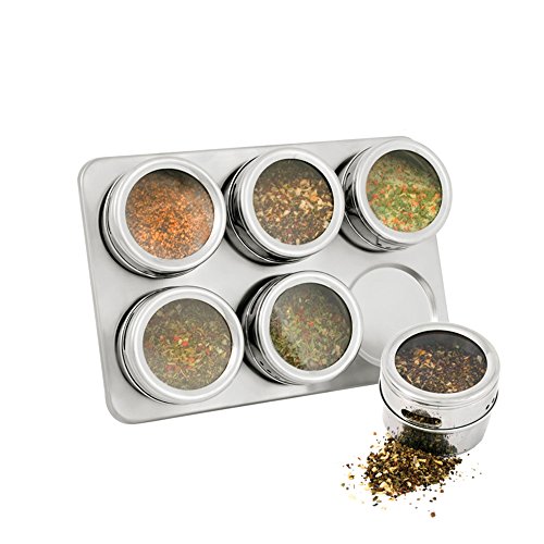- Includes 6 empty jars with strong magnetic backs