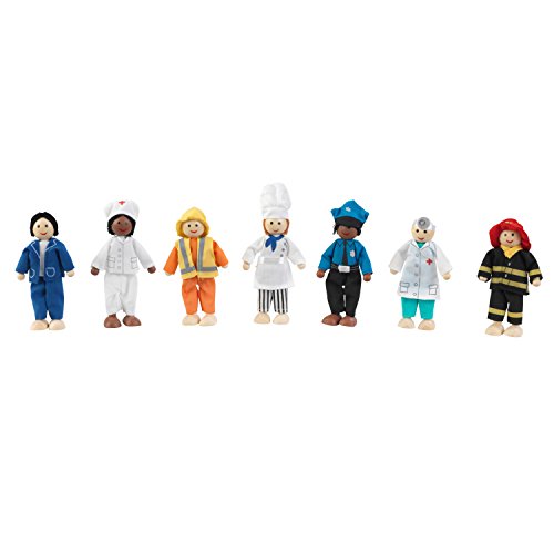These dolls are very professional, but love to play. No assembly required. Dolls are approximately 5 Inch tall. 7 dolls total - firefighter, nurse, construction worker, doctor, police officer, chef and business person.