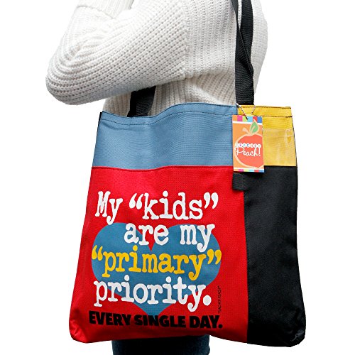 DURABLE MATERIAL made of 600 denier polyester with 12 inch webbed handles - inspirational quote on the outside that reads "My "kids" are my "primary" priority. Every Single Day."