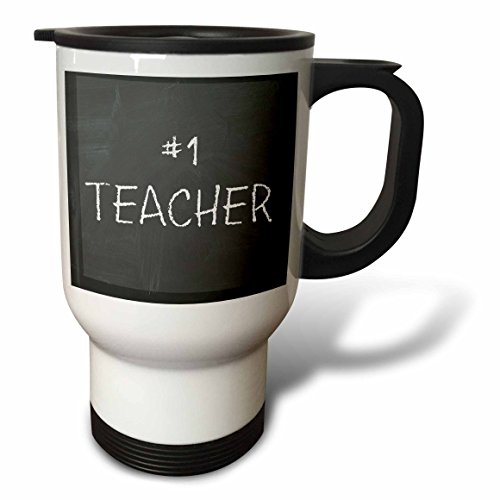 3dRose tm_172420_1 Number 1 Teacher, White Lettering on Black Chalkboard Travel Mug, 14 oz, White