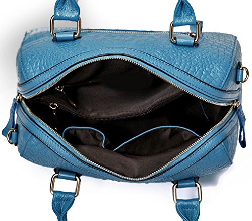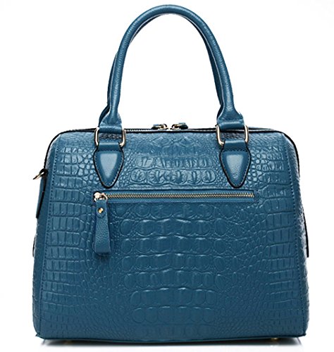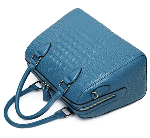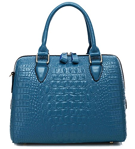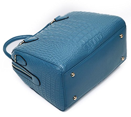 ALC Italian Leather, 3-Compartment Croc Boston Bag w/ Strap- Blue