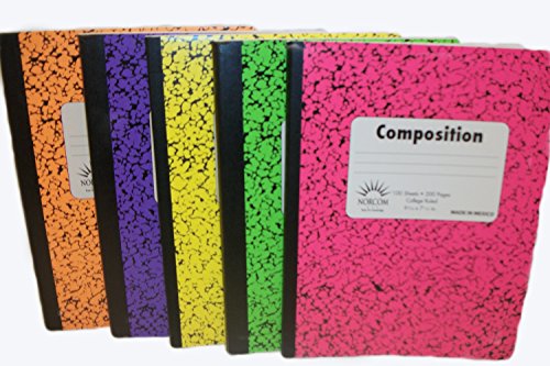 5 Norcom College Ruled 100 Sheets Composition Rainbow Colors Notebooks - (Pack of 5) Green, Pink, Purple, Yellow, Orange- Total 500 Sheets