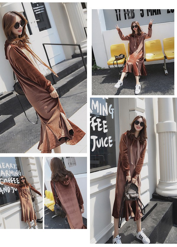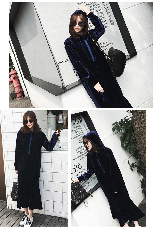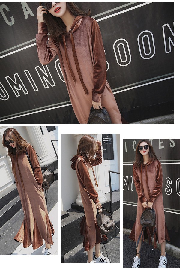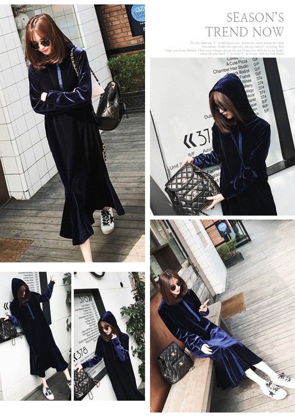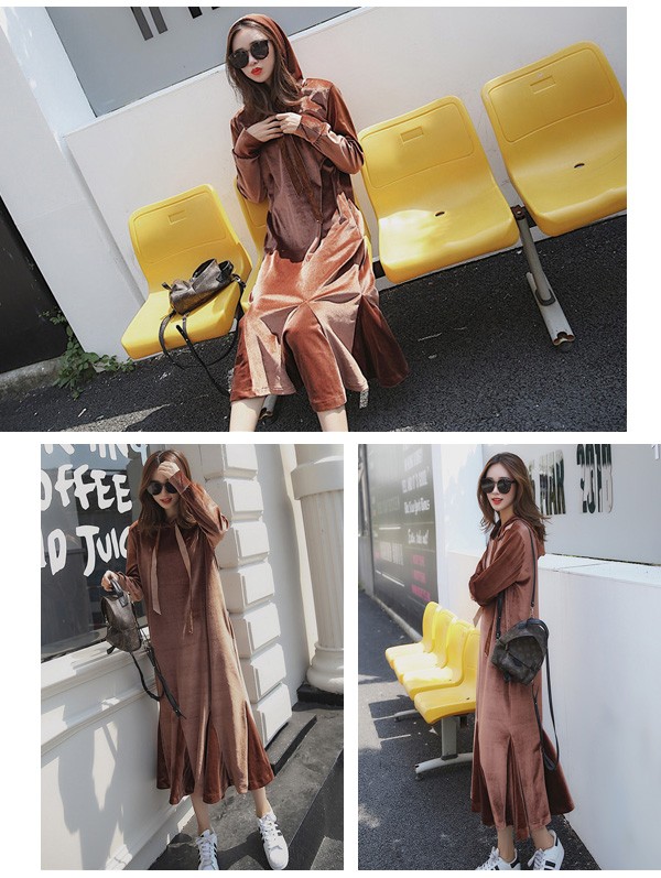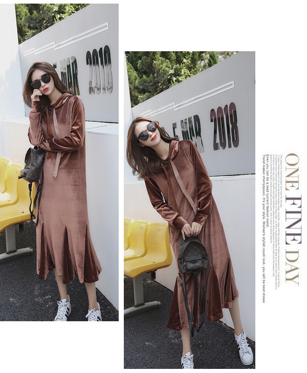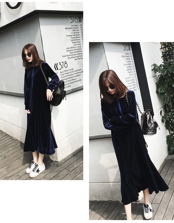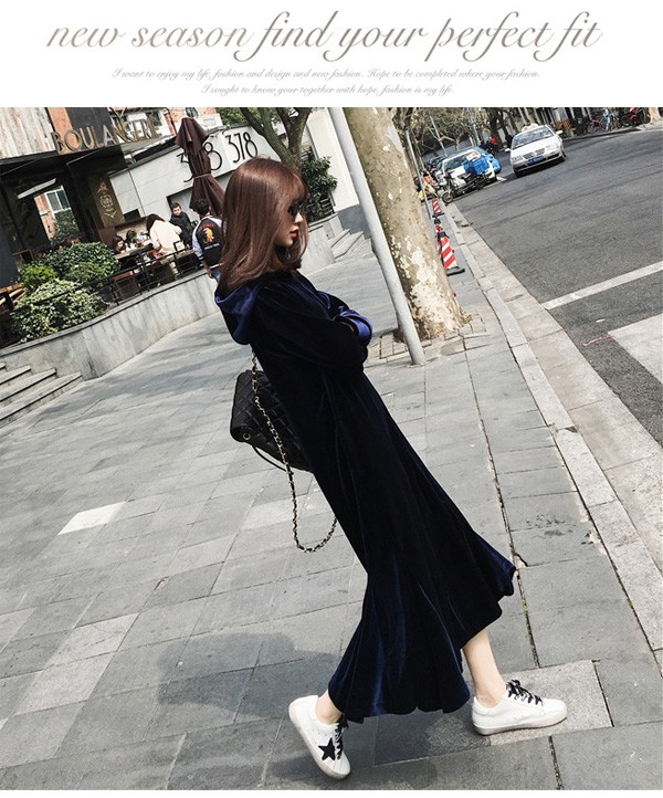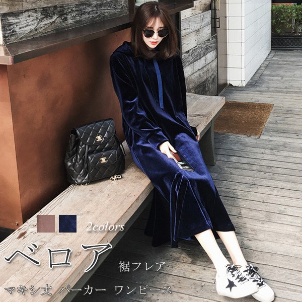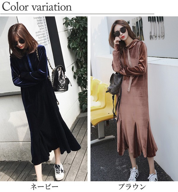 コーディネートしやすいシンプルなマキシ丈ベロア素材のワンピースが新登場!