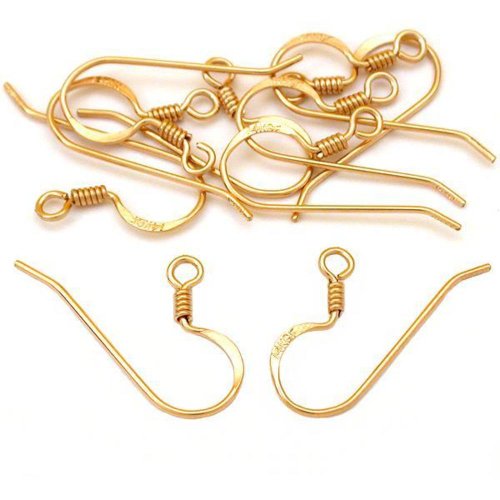 10 Shepherd Hook Earrings 14K Gold Filled Great for Making Earrings. This is a new set of 5 pairs of 14 karat gold filled shepherd hook earrings. Great for making earrings. All have a coil and a hoop towards the bottom to dangle items off of. Each is stamped 14kgf. Each measures approximately 14.4 x 8 mm (9/16" x 5/16").Feature