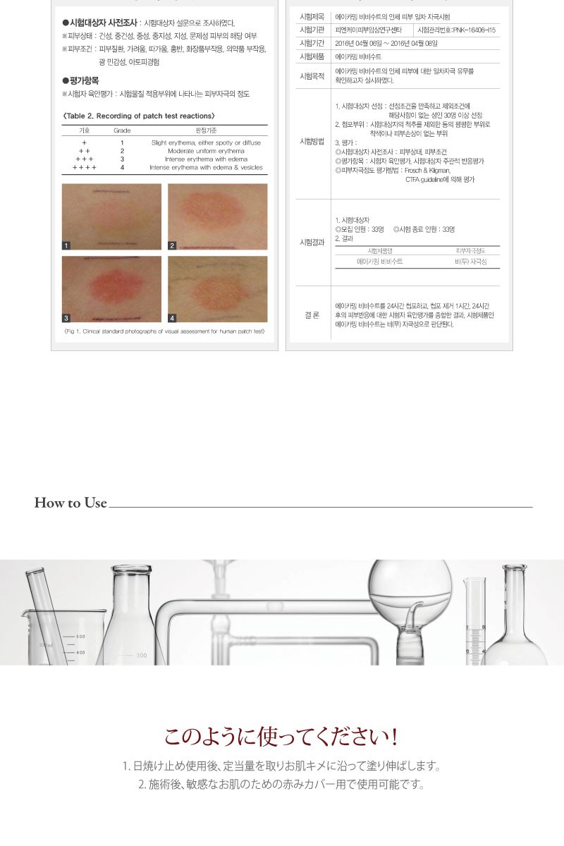 1) 化粧品を使用際、または使用後直射光線により使用部位が紅斑、むくみ、痒みなどの異常症状や副作用があるばあい専門医などと相談すること