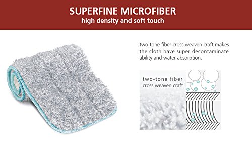 Dual Microfiber Clothes --- Comes with 2 anti-bacterial clothes. The clothes will clean any puddles, collect dust. Super absorbent for liquid, safe for hardwood floors and machine washable.