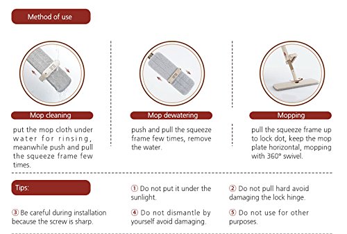 Easy Installation --- Hands Free Mop (TM) can be disassembled into individual pieces. Each one can be easily washed with water. Its vertical stand drying procedure prevents bacteria generation and save your space.