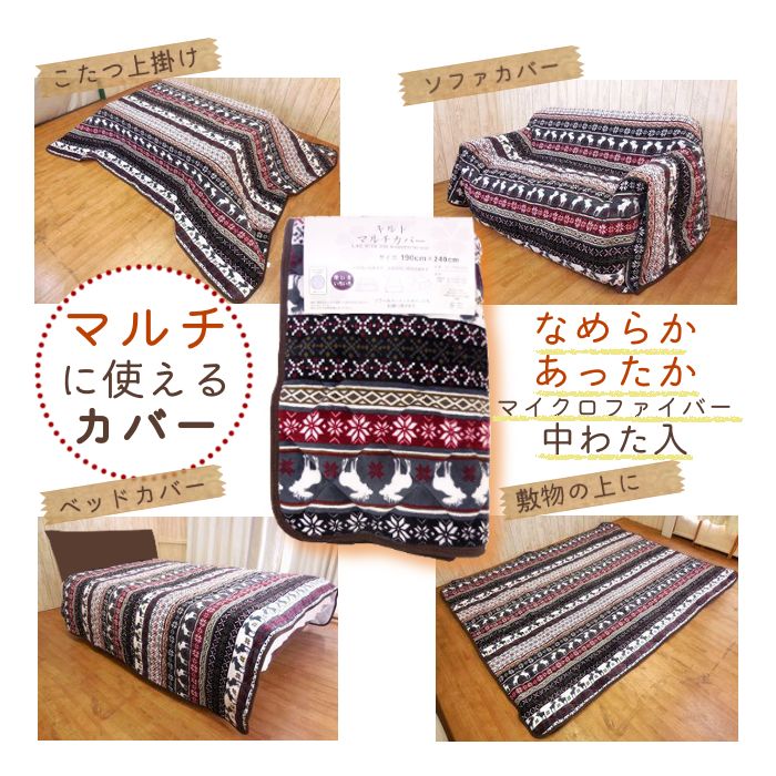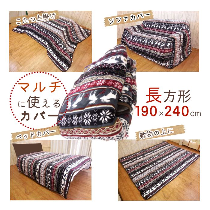 Rakuten }이 크로 화이버(fiber) 멀티 커버 난로 상걸이 직사각형 190 x 240 난로 이불 커버 상괘화장실 세탁가 3다다미 핫 카펫트 소파 베드 커버 따스한 있 귀여운 북유럽 체격