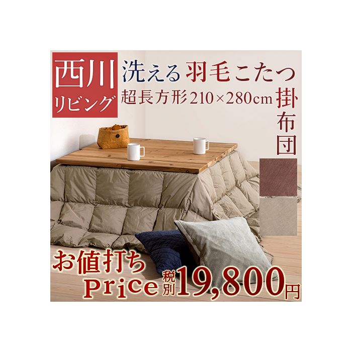 원본상품명:【大感謝ク?ポン?券中!】【西川こたつ布?超長方形】西川リビング羽毛こたつ掛け布?(超長方形)(ウォッシャブル)こたつぶとん天板が超大判
