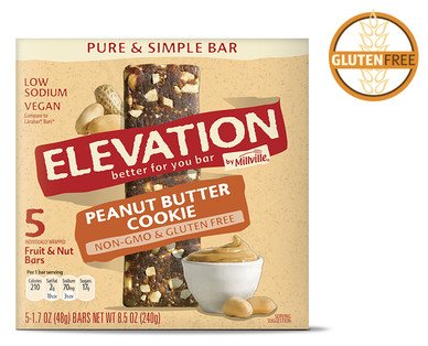 -. Title : Elevation by Millville Peanut Butter Cookie Pure & Simple Bars no GMO, gluten free.1.7oz x 5 bars, total 8.5oz