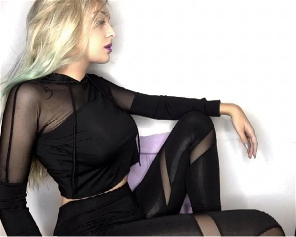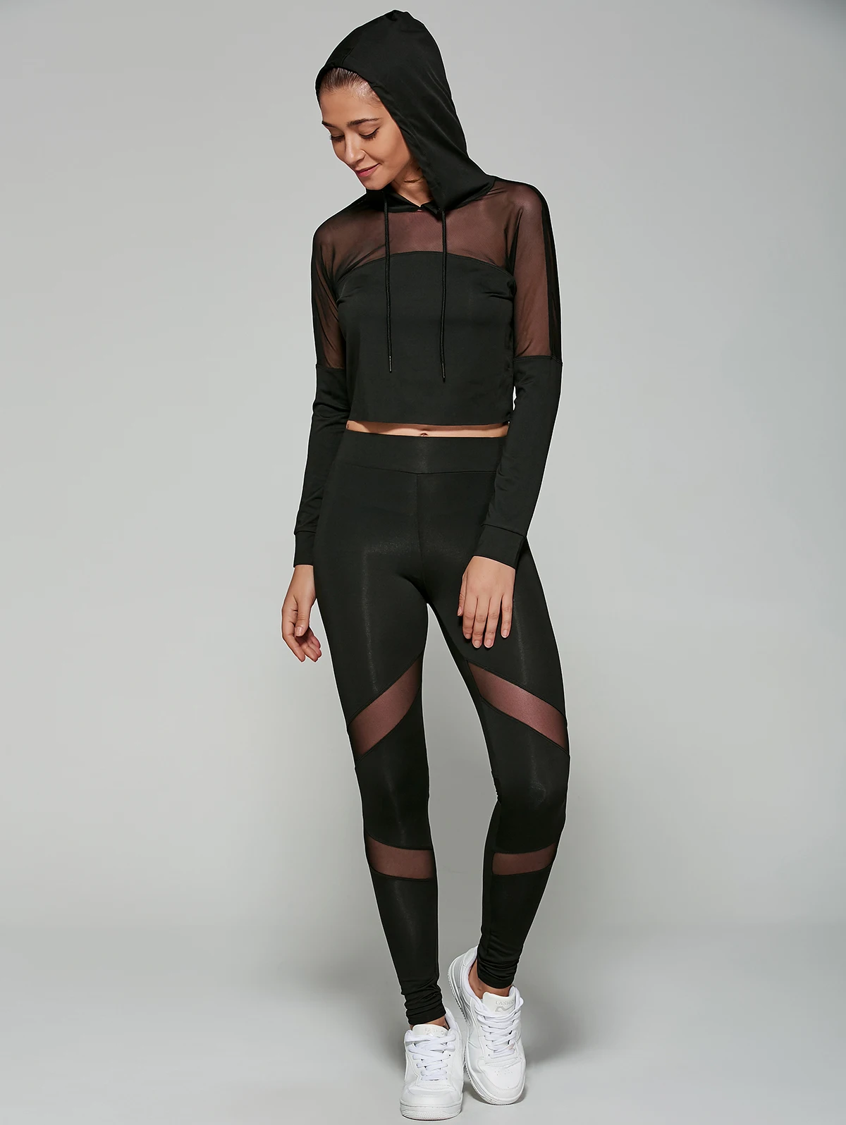 Style:Hooded Mesh Patchwork Breathable Tight Tracksuit