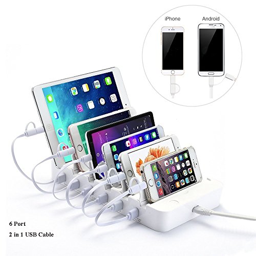 -. Feature : ▲2/1 UPGRAADED USB CABLE- 2 in 1 charging cable, applicable to both of the iPhone and Android device: iPhone, iPad, Samsung Galaxy, LG, Nexus, HTC etc. / ▲5X2.4A and 1X3.0A FAST CHARGER PORTS- providing super fast charging to your smart phones, shortening the charging time / ▲MULTI-CIRCUIT PROTECTION- This charging dock is an idea for a variety of tablet PCS and smart phone device at home or office / ▲6 BRACKET DESIGN- Placing your multiple device at the same time and saving a lot of space on the desktop / ▲WHAT YOU WILL GET- 1*USB Charging Station, 6*USB Cables, 1*Power adapter, 1*Installation guide