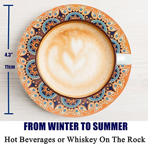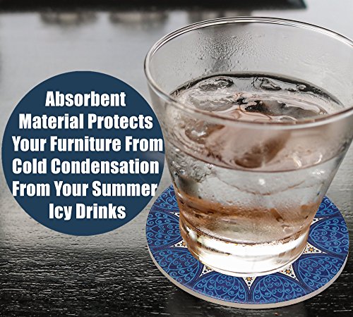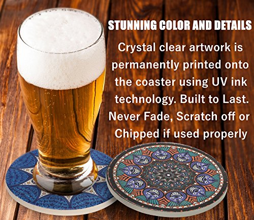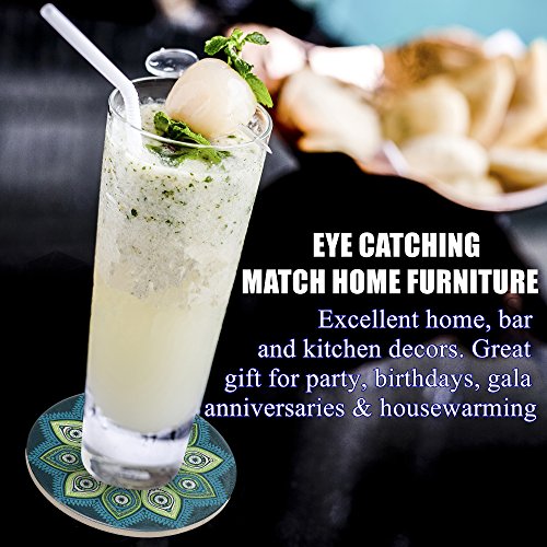 SURPRISINGLY BEAUTIFUL WITH CRYSTAL CLEAR DETAILS - No more boring or eye-soring coasters. Our AMAZING artwork is PERMANENTLY printed onto the coaster using UV ink technology. Use them as conversation starter for party, entertaining gala or wedding registry, which feature attractive vintage ethnic floral patterns.