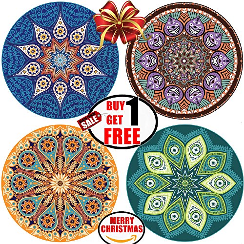 CHRlSTMAS SaIe - ENKORE Absorbent Ceramic Stone Coaster For Drinks - MANDALA, 4 Pack Large 4.3" Size With Cork Back -TODAY ONLY, GET ANOTHER FREE SET SENT TO YOU AUTOMATICALLY, TOTALLY 8 COASTERS