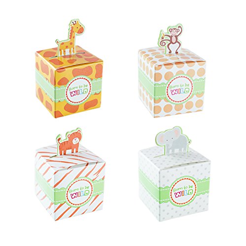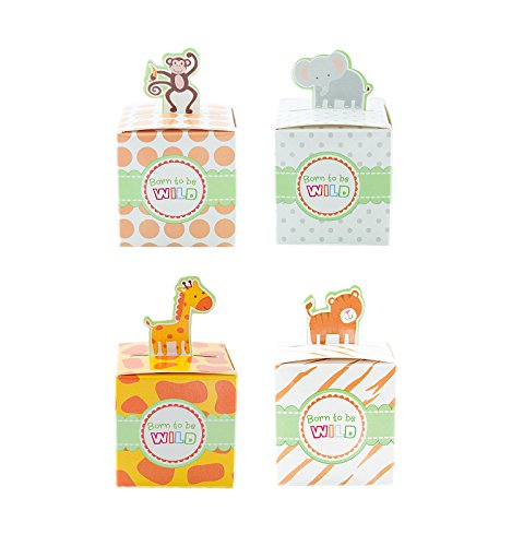 Born To Be Wild Party Favor Box, Cute Jungle Themed Zoo Animals for Baby Shower, Child Birthday (24 Boxes)