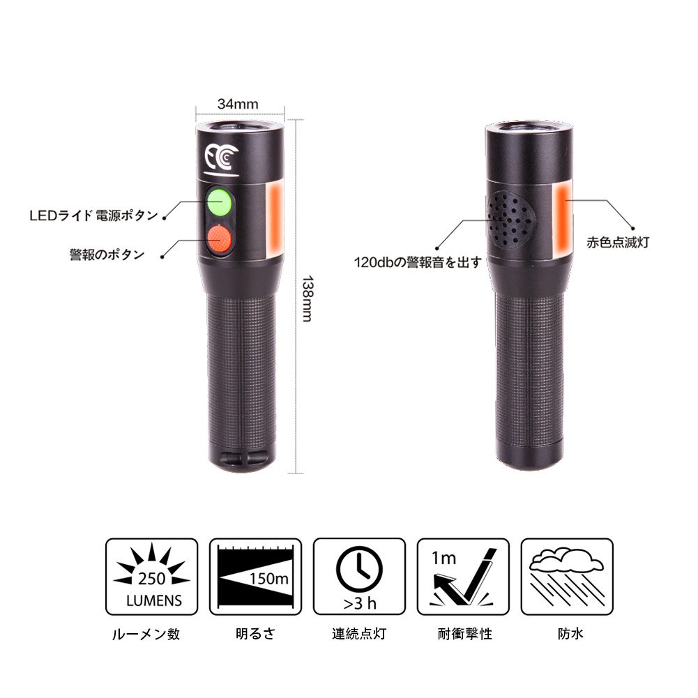 2. When the flashlight falls to the ground, you can inform the surroundings of the crisis with 120 db warning sound, red flashing light, alarm function.