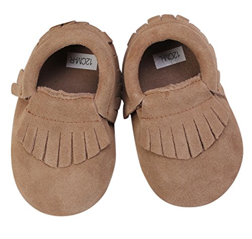 -. Feature : Moccasins are wide and sizes tend to run large, please measure foot size in inches before placing order / Stylish and comfortable; made of soft suede / Durable, soft flexible sole; ships from US / Elasticized ankle keeps moccasins snug / Size chart- 3-6 months: length 4.7", 6-12 months: length 5.2"