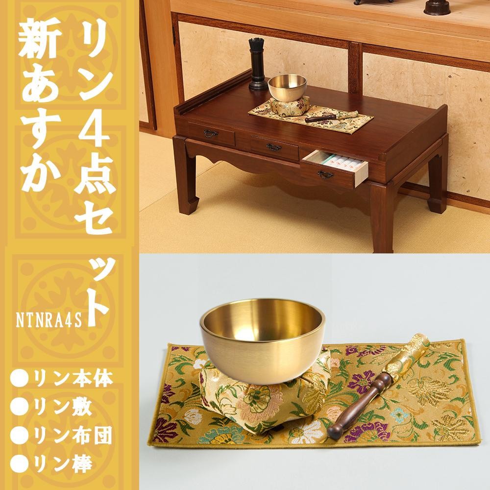 御仏前にふさわしい、荘厳で上品なデザインのリン4点セットです。リン本体は表面にフッ素加工を施し、お手入れも手軽で腐食しにくくなっています。 製造国:リン本体・リン敷・リン布団:日本、リン棒:中国 付属品:取扱説明書 ※サプライヤー直送品 ご注文後3~4営業日後の出荷となります【商品名】リン4点セット 新あすか NTNRA4S