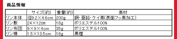 製造国リン本体・リン敷・リン布団:日本、リン棒:中国