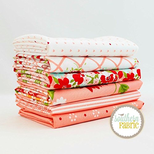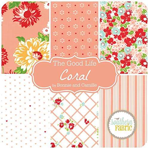The Good Life - Coral Pink Fat Quarter Bundle (6 pcs) - Bonnie and Camille - Moda 18 x 21 inches (45.72cm x 53.34cm) fabric cuts DIY quilt fabric