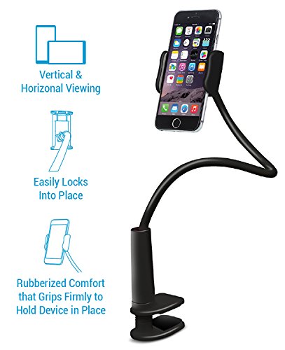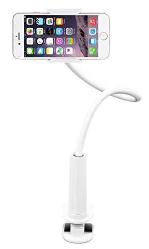 Aduro® Solid-Grip 360 Adjustable Universal Gooseneck Smartphone Stand for Desk – Durable, Rubberized, Mount w/ Holder (White)