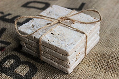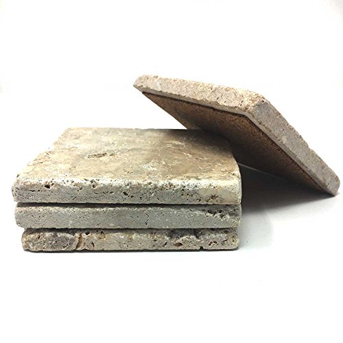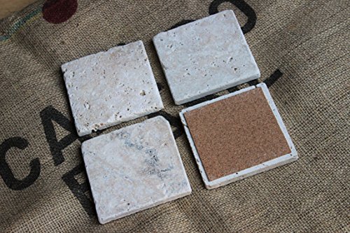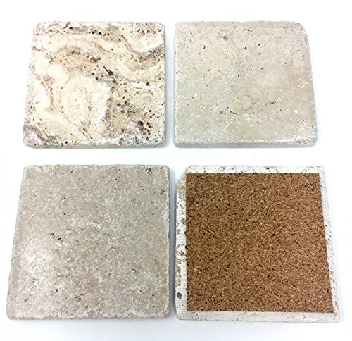 Studio : Marbleobject Publisher : Marbleobject Product Description Great set of 4 Ivory travertine Coasters with Cork Backing. This is for a set of 4 coasters. The coasters measure 4" from point to point and 1/4' thickness. All of our coasters have a cork backing. *Travertine is a natural stone, and may contain small fissures/pits/imperfections. These coasters will vary slightly in pattern - no two coasters will look exactly the same 0