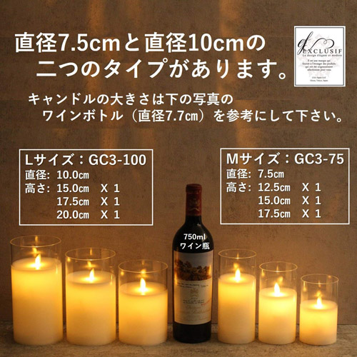 ●グラスの中にロウを流し込んで作った高級感が漂うキャンドルを、本物の炎が揺らぐように見えるLEDと組み合わせて作ったLEDグラスキャンドル3本セット、Mサイズです。