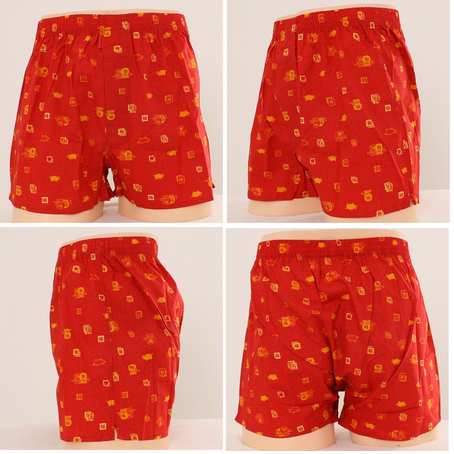 레드계열의 복돼지 나염 트렁크 제품으로 원단이 얇고