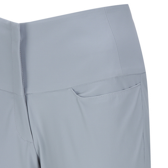 - 와이드 허릿단 디자인으로 포인트를 준 여성 팬츠.