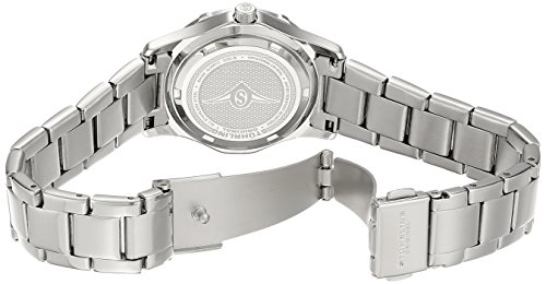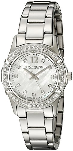 Silver-tone bracelet watch with Swarovski crystal-studded bezel and mother-of-pearl dial with applied Arabic numeral and Swarovski crystal markers