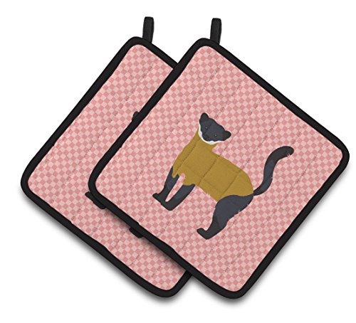 Caroline's Treasures BB7874PTHD Yellow-Throated Marten Pink Check Decorated Pot Holder, 7.5" x 7.5", Multicolor