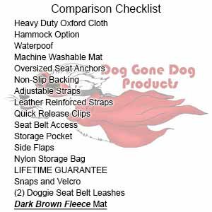We listen to your customers. Thanks to you, we have made many improvements. The mats are now held on with Velcro AND marine snaps which work better than Velcro alone. We eliminated the main seam on the hammock so there is no chance of the seam bursting. We added new colored mats. The seat belt leashes were suggested because some dogs would try to get under the seat cover or in the front seat.