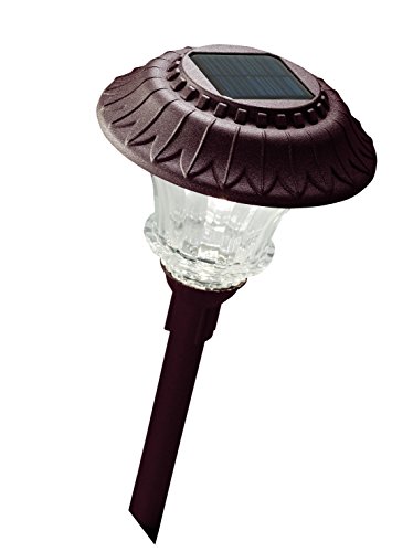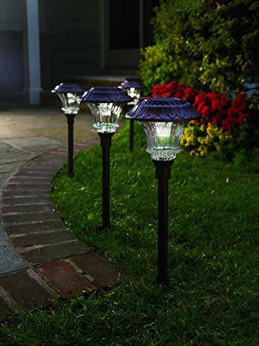 Set of 4 Solar Garden Path Lights, Glass and Powder Coated Cast Aluminum Metal, 6 Bright LEDs per Light 50 Lumens Output per LED, Easy No Wire Installation, Outdoor All Weather, Bronze
