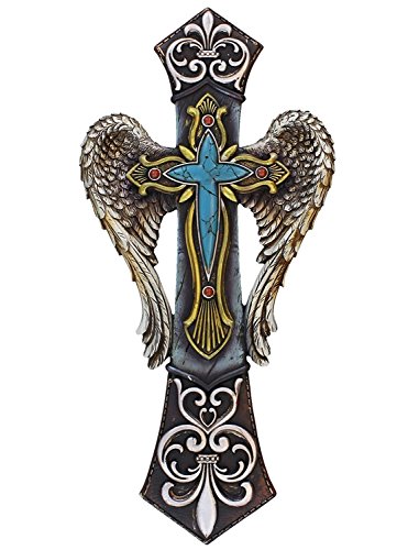Amazing Angel Wings Fleur De LIs Decorative Layered Wall Cross