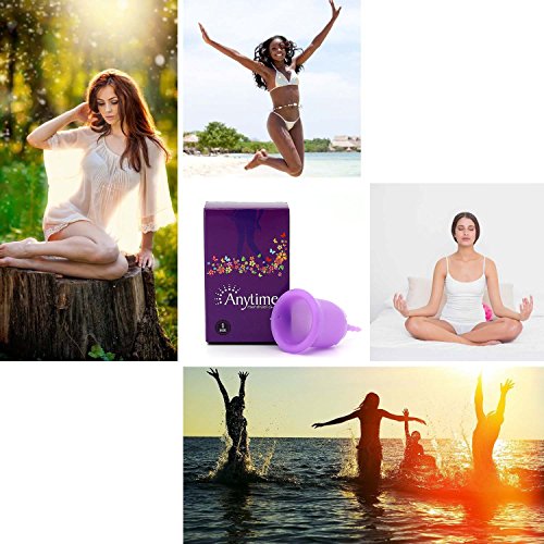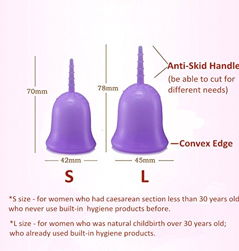 Studio : Xingqijia Publisher : Xingqijia Binding : Health and Beauty Product Description Medical Grade Silicone Feminine Cups No matter you are a runner, swimmer, jumper, jogger or hiker, our cups will fit into your life, not the other way around. There are two sizes available. Small and Large. There is a small difference between the two sizes. Small is with 42mm cup caliber. Large is with 45mm cup caliber. You do not need worry about size optional. Because you will get 2 size cups by only one unit price. Specification Brand: Anytime Life Cycle: 5-10 Years,recommend replacing new unit by every 2-3 years Usage: feminine care product Package includes: two silicone menstrual cup,carry bag,user manual How to clean the cups? Put it into the boiled water for few seconds. Because cups has been sterilized well before sold out. 0