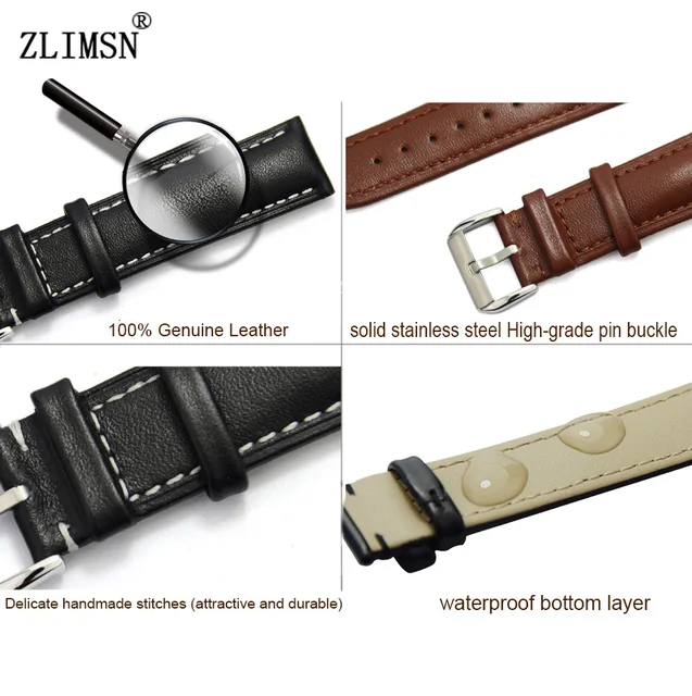 상품 내용 ZLIMSN 부드러운 정품 가죽 손목 18 20 22 24 26 미리메터 브라운 블랙 남성 여성 시계 벨트 액세서리 시계 Relojes 아저씨
