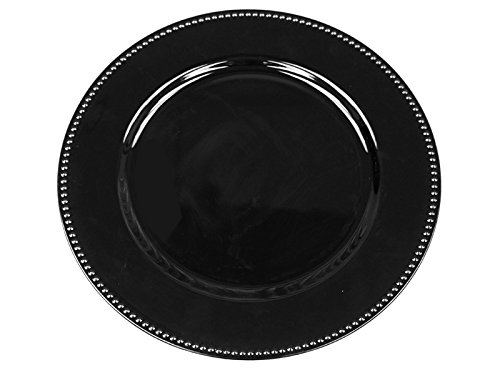 Product Description Black Leaf Beaded Edge Charger Plates 13 inches diameter. Solid acrylic base with beaded edging to enhance the appearance of your reception table. Easy to clean, wipe with damp cloth or sponge. Great use with fine china, and protects the linens from the plates bowls. **Charger plates cannot be used as dinner plate themselves. **Inner ring measures 9"; diameter. **Sold in sets of 24 plates. If any chargers are damaged in transit, replacements can only be sent via UPS Ground or Refunded, solely at our discretion. Note: Chargers are manufactured to have circular groove design throughout. This is normal, and is not a defect. 0
