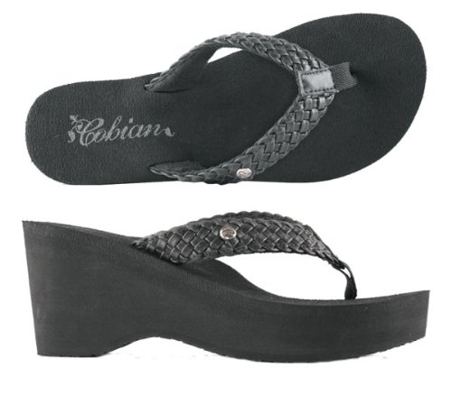 Amazon.com Product Description The Zoe from cobian is a lightweight charmer that makes a big style impression. A distinctive wedge gives you a lot of lift, but thanks to EVA construction and built-in anatomical arch support, it’s also effortless to wear. The waterproof strap and nylon toe post means splashing along the beach-front is a definite option and the heart-motif outsole tread leaves adorable tracks in the wet sand.