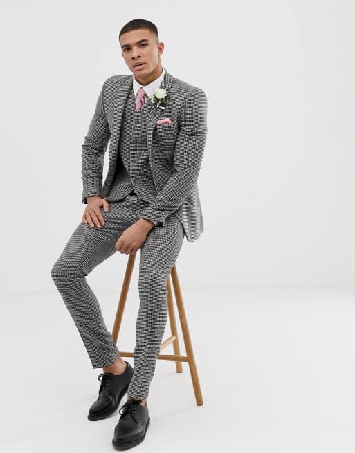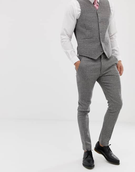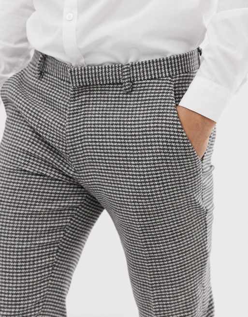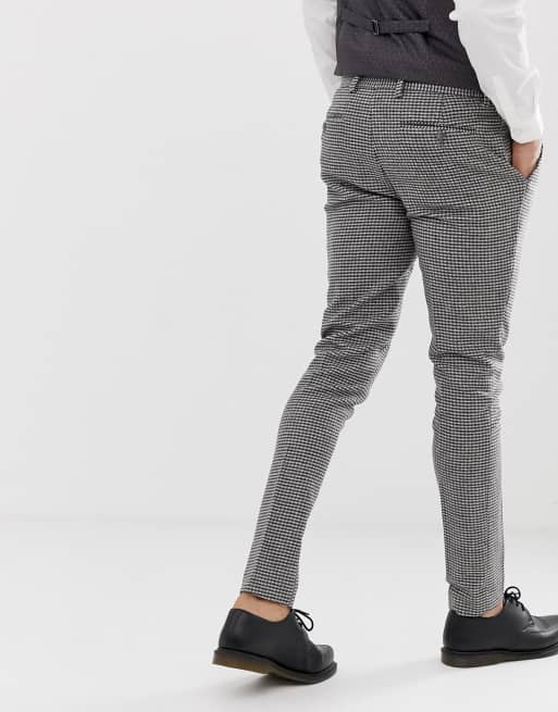 ASOS Wedding Super Skinny Suit Pants In Gray Houndstooth