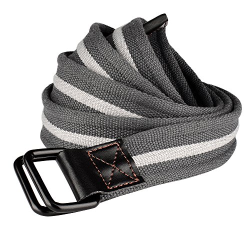 -. Title : Drizzte Mens Plus Size 39-71'' Double D Ring Canvas Cloth Belts Grey