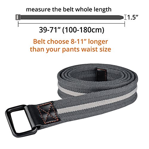 -. Feature : Belt size need choose longer than your pants waist size. 8-11'' longer or shorter according to your preference. / Double solid metal ring canvas belts, can be fixed in each place, very utility and convenient. Buckle 1.38x1.96'' / Comfortable canvas faric cloth belt. Belt Width 1.5'' / Fit for your casual daily wearing, working, travel, sport / Size reference: [39'': waist 28-31] [43'': waist 32-35] [47'': waist 36-39] [51'': waist 40-43] [55'': waist 44-47] [59'': waist 48-51] [63'': waist 52-55] [67'': waist 56-59''] [71'': waist 60-63'']