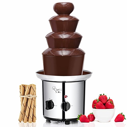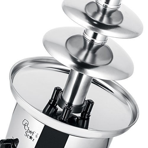 The Chef's Star 3 Tier Chocolate Fountain is great for parties or any special event indoor or outdoor. Ideal for fruit, marshmallows, cookies, pretzels or anything else that you would like to dip into fresh running chocolate. The base and the tower is made of high quality stainless steel. Durable and easy to use.Feature