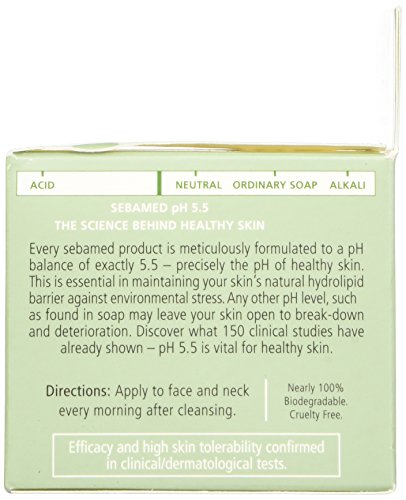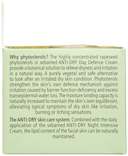 The smoothing and soothing properties of phytosterols and avocado oil (with skin-related lipids, Vitamins A and E) combined with Vitamin E protect and care for the skin. Our Sebamed anti-dry, day defense cream slides easily over the skin where it is totally absorbed, leaving no sticky traces. The PH value of 5.5 supports the skin's own natural acid barrier against dehydration and irritants. Dermatological tests have proved that Sebamed anti-dry, day defense cream used in combination with the night cream can restore the essential moisture balance of dry skin.Feature