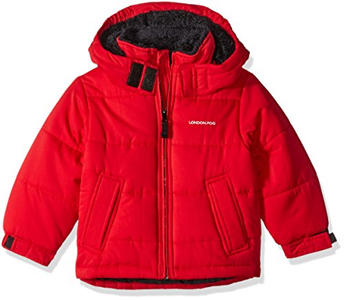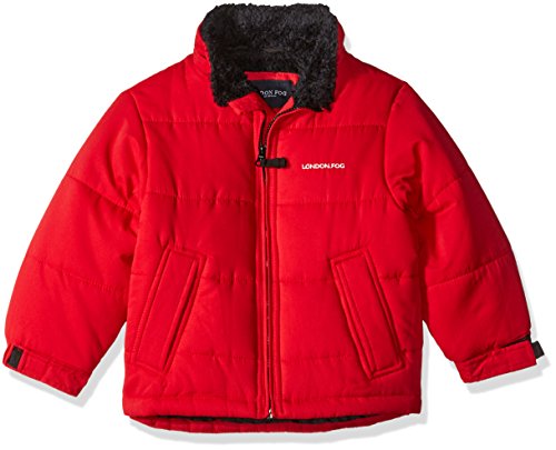 London Fog Little Boys Heavyweight Teddy Faux Fur Lined Classic Bubble Jacket, Red, 7