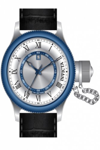 -. Title : Invicta Men's 14080 Russian Diver Silver Dial Black Leather Watch