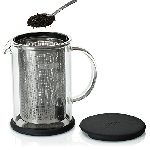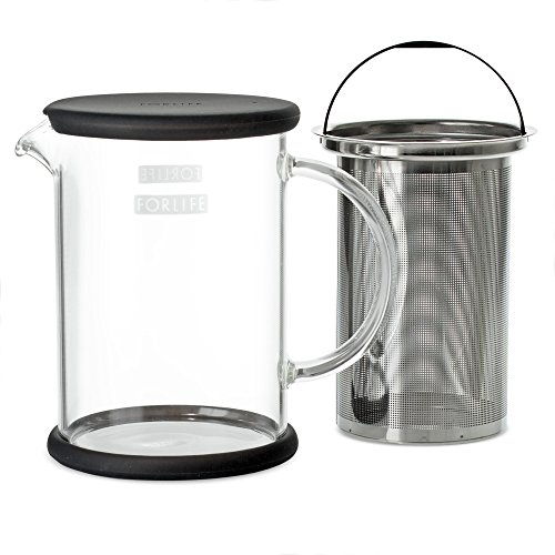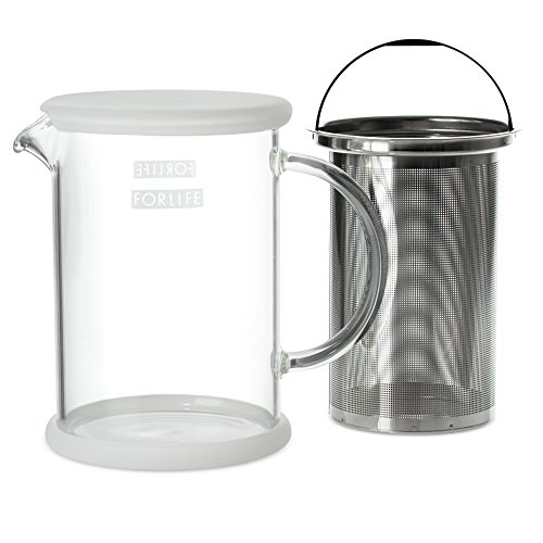 FORLIFE LUCENT Glass Teapot with Basket Infuser, 24-Ounce, Frost