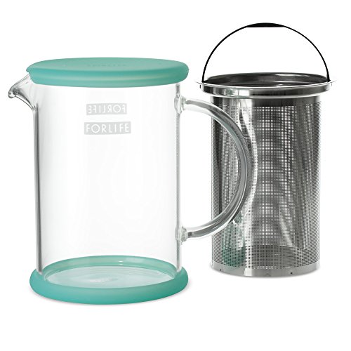 FORLIFE LUCENT Glass Teapot with Basket Infuser, 24-Ounce, Mint