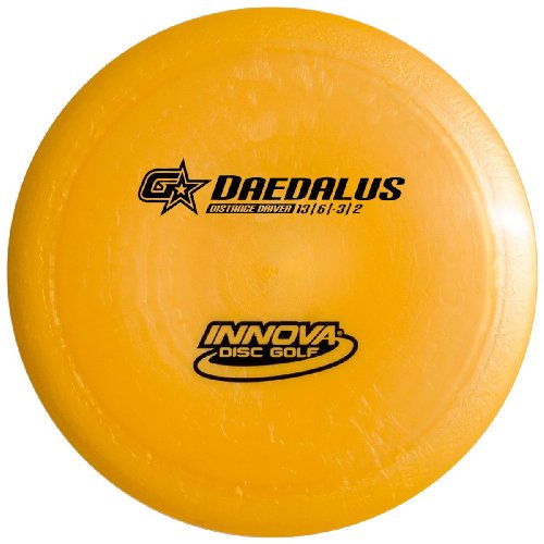 Studio : Innova Publisher : Innova Binding : Misc. Product Description A distance driver for humans who want to soar with gods. The Daedalus has wings to fly far down the fairway. The Daedalus is a new maximum downwind distance driver crafted for less powerful players. The disc will double as a long distance roller for more advanced players. The Daedalus will be available in GStar plastic and is initially rated 13|6|-4|2. The Daedalus likes to be thrown low. Make sure it doesn't soar too close to the sun. Colors may vary. Please contact us for more specific weight or color requests. 0
